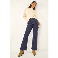 Dusk Front Pocket Bootcut Jeans from Roman. Look effortlessly cool this Autumn/Winter in these front pocket bootcut jeans. Crafted from a comfortable stretch fabric, these jeans feature belt loops and practical front and back patch pockets. Fastened with a convenient front zip, these bootcut jeans are both stylish and functional. Pair them with a simple t-shirt and a leather jacket for a chic and edgy look that will take you from day to night effortlessly! | Dusk Women's Front Pocket Bootcut Jeans in Indigo | Size: 12 - Manufacturers part numbers: 180969p|Dusk_5063566417632