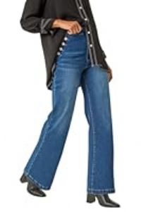 Get this Roman Originals Wide Leg Jeans for Women UK Ladies Denim Trousers Palazzo Pants Jeggings Stretchy Cotton Summer Winter Smart Office Work Party Flattering Bottoms - Deep Blue - Size 10 from Amazon for only £36.00. We found this offer today, so hurry whilst stocks last! - Manufacturers part number: 180515p