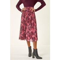 Rose Print Mesh Layered Skirt from Roman. Add a touch of romance to your Autumn/Winter wardrobe with this stunning rose printed mesh layer skirt. Featuring a beautiful drop yoke design, this skirt is layered with a soft lining for comfort and coverage. Perfect for evenings out or special occasions, simply style it with a chic blouse and heels for an elegant and feminine look. | Roman Women's Rose Print Mesh Layered Skirt in Red | Size: 20 - Manufacturers part number: Roman_5063566422216