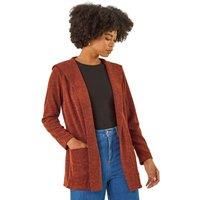 Longline Hooded Cardigan from Roman. Get cosy and stylish this Autumn and Winter with our versatile longline cardigan. Crafted from a stretch jersey fabric, this cardigan features a sophisticated collar detail and practical long sleeves. The longline design offers a flattering fit, making it a perfect layering piece for the colder months. Simply pair with a simple t-shirt and your favourite jeans for a chic and comfortable look all season long! | Roman Women's Longline Hooded Cardigan Sweater in Orange | Size: 12 - Manufacturers part number: Roman_5063566422681