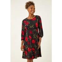 Floral Print Stretch Dress from Roman. Prepare to bloom in style with this floral print stretch dress designed for the Autumn Winter season. Featuring a classic round neckline and long cuff sleeves, this knee-length dress is tailored from a comfortable stretch fabric with a charming floral print. The flattering empire waist adds a touch of elegance. Pair with a denim jacket and ankle boots for a stunning fall look! | Roman Women's Floral Print Stretch Dress in Red | Size: 16 - Manufacturers part numbers: Roman_5063566428270|141161p