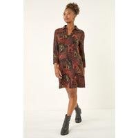 Patchwork Print Shift Dress from Roman. Make a stylish statement this Autumn Winter season in this trendy print shift dress. Crafted from a comfy stretch fabric, this dress features a unique patchwork print design that adds a twist to your wardrobe. The dress boasts a flattering v-neckline, perfect for showcasing your favourite jewelry. Pair it with a denim jacket and knee-high boots for a stunning fall look that's perfect for any occasion! | Roman Women's Patchwork Print Shift Dress in Orange | Size: 12 - Manufacturers part number: Roman_5063566436176