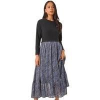 Petite Contrast Tiered Midi Dress from Roman. Add a touch of elegance to your Autumn Winter wardrobe with this gorgeous Petite tiered midi dress. Crafted from a soft woven fabric, this dress features a classic round neckline and long sleeves to keep you warm during the cooler seasons. The contrast print adds a stylish touch, while the pleated skirt falls beautifully at midi length. Pair with a denim jacket and ankle boots for a stunning fall look that will turn heads wherever you go! - Manufacturers part number: Roman_5063566437180