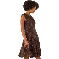 Sequin Twist Front Stretch Dress from Roman. Elevate your occasionwear this season with this fabulous fit and flare sequin dress! Cut from a comfortable stretch jersey fabric, this piece features a modest round neckline with intricate twist detail and sophisticated cap sleeves. A subtle keyhole cut-out detail adds interest, while the skirt falls in a fit and flare style to a party-perfect knee-length. Simply add heels and statement jewellery to complete this fashion-forward, festive look! - Manufacturers part number: Roman_5063566441262