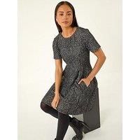 Petite Boucle Knit Dress from Roman. Effortlessly elevate your Autumn/Winter wardrobe with this sleek boucle dress. The classic round neckline and short set-in sleeves make it a versatile piece for any occasion. Cut in a knee-length style with a comfortable pull-on design, this dress exudes chic sophistication. Crafted from a stretchy boucle fabric, this unlined dress ensures a flattering fit and a touch of elegance. Pair with tights and heeled boots for a stylish ensemble that transitions seamlessly from day to night. | Roman Women's Petite Boucle Knit Dress in Black | Size: 12 - Manufacturers part number: Roman_5063566444041