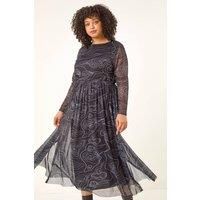Curve Abstract Swirl Midi Dress from Roman. Make a statement in this chic abstract print midi dress. Featuring a trendy all-over abstract print, this dress is perfect for Autumn and Winter outings. The dress boasts a modest round neckline and elegant long sleeves, making it a versatile piece for any occasion. The midi length adds a touch of sophistication, while the unique print adds a pop of interest. Style it with tights and ankle boots for a fashionable and effortless look! | Roman Women's Curve Abstract Swirl Midi Dress in Black | Size: 26-28 - Manufacturers part numbers: Roman_5063566449428|147716p