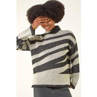 Abstract Stripe Knit Jumper from Roman. Embrace the chill in style with this abstract stripe knit jumper. The soft hand touch fabric ensures warmth and comfort, featuring a shaped neckline and long sleeves for added cosiness. Pair with your favourite jeans and ankle boots for an effortlessly chic look this Autumn/Winter season. | Roman Women's Abstract Stripe Knit Jumper in Grey | Size: 18 - Manufacturers part numbers: Roman_5063566454644|163105p