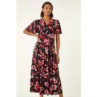 Spot Print Wrap Midi Dress from Roman. Wrap up in style with this trendy spot print midi dress, perfect for the Autumn Winter season. The dress features a chic v-neckline with a wrap-over front and short sleeves, keeping you in style. Cut from a comfortable stretch jersey fabric with a bold spot print, this dress finishes at a flattering midi length for an effortlessly look. Pair it with a denim jacket and ankle boots for a stunning fall look! | Roman Women's Spot Print Wrap Midi Dress | Size: 14 - Manufacturers part number: Roman_5063566455146