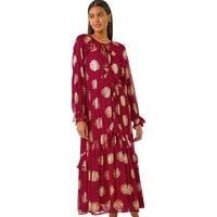 Frill Brocade Midi Dress from Roman. Be the star of the show in this stunning brocade midi dress. The perfect pick for your next special Autumn Winter occasion, this dress boasts delicate frills and metallic gold details for an elegant touch. With a flattering midi length and floaty long sleeves, this smooth dress is a must-have for any stylish wardrobe. Pair with strappy heels and a trendy bolero to complete your polished look! - Manufacturers part number: Roman_5063566458512