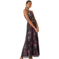 Floral Pleated Halter Neck Maxi Dress from Roman. Embrace elegance and style this Autumn Winter in our pleated maxi dress. This stunning dress features a trendy halter neckline and a sleeveless style, perfect for special occasions. Crafted from a smooth chiffon fabric adorned with a blooming floral print, it finishes at a flattering maxi length with a pleated skirt that moves gracefully with every step. Pair with strapped heels and a trendy bolero for a polished and sophisticated look that will make you stand out. | Roman Women's Floral Pleated Halter Neck Maxi Dress in Black | Size: 18 - Manufacturers part number: Roman_5063566458642