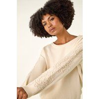 Embroidered Sleeve Knit Jumper from Roman. Unlock a touch of elegance with our embroidered sleeve knit jumper this Autumn Winter season. Spruced up with classic round neckline and stunning embroidered long sleeves, this jumper exudes style effortlessly. Crafted from a soft mix of knitted fabrics to offer comfort and warmth, pair with wide leg trousers and ankle boots for a cosy outfit! | Roman Women's Embroidered Sleeve Knit Jumper in Ivory | Size: 18 - Manufacturers part number: Roman_5063566464254