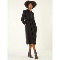 Zip Front Collared Midi Dress from Roman. Make a stylish statement this Autumn/Winter season in this chic zip detail midi dress. Featuring a flattering collared neck and trendy zip detail, this dress is perfect for any occasion. The long sleeves with elasticated cuffs add a touch of sophistication, while the patch pocket detail on the bodice brings a cool and casual vibe to the overall look. Complete the outfit with tights and heeled boots for a fashionable ensemble that will turn heads wherever you go! | Roman Women's Zip Front Collared Midi Dress in Black | Size: 16 - Manufacturers part number: Roman_5063566473607