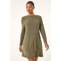 Roman Textured Ribbed Swing Dress - Khaki For a chic and comfortable look this Autumn/Winter opt for this ribbed swing dress. Featuring a unique button detail on the shoulder this knee length dress is designed with a classic round neck and short sleeves. The ribbed texture adds depth to the look making it a versatile piece for your wardrobe. Pair with tights and ankle boots for a stylish and effortless outfit that can take you from day to night seamlessly! Material Content: 95% Polyester 5% Elastane Was... - Manufacturers part numbers: Roman_5063566489813|148089p