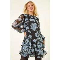 Petite Floral Print Frill Swing Dress from Roman. Bring a touch of elegance to your Autumn Winter wardrobe with this blooming Petite chiffon dress. The classic round neckline and long cuff sleeves add a sophisticated touch, while the bright floral print exudes a playful vibe. This swing style finishes elegantly with a frill hem, making it perfect for a day look. Pair it with a denim jacket and ankle boots for a stunning outfit! | Roman Women's Petite Floral Print Frill Swing Dress in Black | Size: 8 - Manufacturers part number: Roman_5063566501768