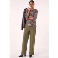 Embellished Leaf Print Top from Roman. Shimmer and shine in this stunning hotfix leaf top, perfect for the Autumn/Winter season. Featuring an eye-catching all-over printed detail, this top boasts a stylish round neckline and flattering 3/4 sleeves that finish at the hip. Pair it with your favourite jeans and ankle boots for a chic and effortless look that will take you from day to night with ease. | Roman Women's Embellished Leaf Print Top | Size: 16 - Manufacturers part numbers: Roman_5063566504318|191140p