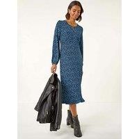 Roman Spot Print Keyhole Midi Dress - Blue Spot Print Keyhole Detail Dress with a flattering round neckline and keyhole finish. Designed with long sleeves and elasticated cuffs an empire waist for shape and a fit-and-flare silhouette. Finished with a frill hem and midi length for added elegance. Style with tights and ankle boots for a chic everyday look. Material Content: 96% Viscose 4% Elastane Washing Instructions: Machine Washable Length: Approx. 120cm Keyhole Detail Frill Hem Empire Waistline - Manufacturers part number: Roman_5063566512115