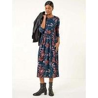 Roman Floral Print Stretch Midi Dress - Rose Stay stylish and warm in our floral print midi dress. Crafted from a stretch jersey fabric this dress features a classic round neckline and long sleeves to keep you cosy during the fall seasons. The elasticated waist with side pockets ensures a practical and flattering fit. Effortlessly style this midi dress with a denim jacket and ankle boots for a stunning look! Material Content: 95% Polyester 5% Elastane Washing Instructions: Machine Washable Length: Appro...