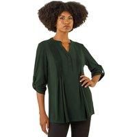 Pintuck Button Stretch Top from Roman. Elevate your casual wardrobe with this versatile stretch top, perfect for the Autumn/Winter season. Featuring elegant pintuck detailing and a stylish notch neckline, this top is designed with 3/4 sleeves for a flattering look. Crafted from stretch jersey fabric, this top offers both style and comfort in one. Pair with jeggings and ankle boots for an effortless everyday outfi | Roman Women's Pintuck Button Stretch Top in Green | Size: 10 - Manufacturers part number: Roman_5063566514638