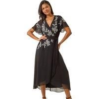 Premium Beaded Wrap Midi Dress from Roman. Shimmer and shine this Autumn Winter in our ultra-glamorous dress, designed to make a statement at any event. The feminine v-neckline and wrap over front complement the beaded details on the premium chiffon fabric. With essential side pockets and falling at a midi length, this dress is both practical and stylish. Complete the look with strapped heels and a trendy bolero! | Roman Women's Premium Beaded Wrap Midi Dress in Black | Size: 12 - Manufacturers part number: Roman_5063566518490