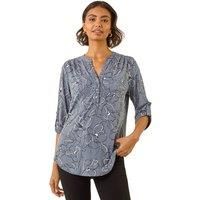 Floral Notch Neck Shirt from Roman. Make a chic statement this season with this beautiful floral print shirt. The all over floral line print adds a touch of femininity to this classic piece. Featuring a trendy notch neckline and elegant 3/4 sleeves, this shirt finishes at the low hip for a flattering silhouette. Crafted from a stretchy jersey fabric, this shirt ensures all day comfort and style. Pair with jeans and ankle boots for a fashionable and effortless look. | Roman Women's Floral Notch Neck Shirt in Grey | Size: 18 - Manufacturers part numbers: Roman_5063566521995|100242p