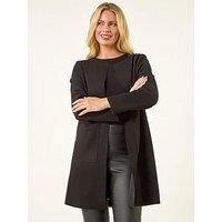 Petite Faux Suede Jacket from Roman. Add a touch of sophistication to your Autumn/Winter wardrobe with this chic faux suede pocket jacket. Featuring a classic round neck and long set-in sleeves, this jacket exudes effortless style. The applied patch pocket adds a unique detail to the unlined jacket, and the pull-on style ensures easy wear. Pair with cosy knitwear and your favourite jeans for a stylish and comfortable look that's perfect for everyday. | Roman Women's Petite Faux Suede Jacket in Black | Size: 14 - Manufacturers part numbers: Roman_5063566525702|150539p