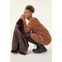 Stripe Knit Jumper Dress from Roman. Cosy up in style this Autumn/Winter with this chic stripe knitted short jumper dress. The round neckline and long sleeves provide a classic touch, while the flattering short length adds a modern twist. Perfect for chilly days, pair it with tights and ankle boots for a comfy yet stylish ensemble that will keep you warm and on-trend all season long. | Roman Women's Stripe Knit Jumper Dress in Chocolate | Size: 18 - Manufacturers part number: Roman_5063566531147