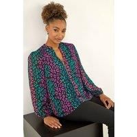 Animal Print Zip Front Top from Roman. Embrace your wild side with this chic animal print zip top for the Autumn/Winter season. Featuring an eye-catching all-over animal print, this top has a stylish v-neck with a flattering notch neckline and long sleeves with elasticated cuffs. The zip detail at the centre front adds a modern touch to this classic silhouette. Pair it with tailored trousers and heels for a sophisticated and on-trend look that will take you from day to night effortlessly. | Roman Women's Animal Print Zip Front Top in Teal | Size: 16 - Manufacturers part number: Roman_5063566532113