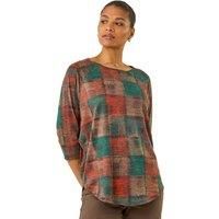 Patchwork Print Round Hem Top from Roman. Add a touch of artistic flair to your Autumn/Winter wardrobe with this patchwork print top. Featuring a unique all-over patchwork print, this round hem top is designed with flattering 3/4 sleeves and a round neckline. The top finishes with a stylish rounded hemline, perfect for pairing with jeggings and ankle boots for a casual and chic look. | Roman Women's Patchwork Print Round Hem Top in Orange | Size: 20 - Manufacturers part number: Roman_5063566534636