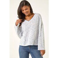 Contrast Stitch V-Neck Top from Roman. Add a touch of elegance to your Autumn/Winter wardrobe with this stunning contrast V-Neck top. Crafted from a luxurious fabric, this top features stitch detailing on the neckline that adds a chic touch. The long sleeves provide comfort and warmth, while the v-neckline offers a flattering silhouette. Pair this versatile top with jeans and ankle boots for a stylish and sophisticated look that transitions seamlessly from day to night. | Roman Women's Contrast Stitch V-Neck Top in Cool White | Size: 10 - Manufacturers part number: Roman_5063566538566