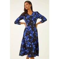 Floral Print Button Midi Dress from Roman. This elegant Floral Print Midi Dress is designed to flatter with its classic V-neckline and delicate button detailing on the bodice. Crafted in a soft, flowing fabric, it features 3/4 length sleeves for added coverage and comfort. The midi length creates a versatile silhouette that works beautifully for day or evening wear. Style it with tights and ankle boots for an effortlessly chic look thats perfect for the cooler seasons. Add a leather jacket or tailored coat for a polished finish. | Roman Women's Floral Print Button Midi Dress in Black | Size: 18 - Manufacturers part numbers: Roman_5063566550452|146342p