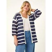 Roman Curve Stripe Crochet Knit Cardigan Add a touch of chic to your wardrobe with this classic Curve stripe knit cardigan. Featuring a stripe contrast crochet and cosy 3/4 sleeves this stylish piece finishes at the hip and has a front button detail. Completed with a classic v-neckline this cardigan is perfect to layer over your favourite shirt and jeggings for a casual yet sophisticated look! Material Content: 56% Polyester 44% Acrylic Washing Instructions: Machine Washable V-Neckline 3/4 Lengt... - Manufacturers part number: Roman_5063566563704