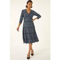 Speckled Twist Front Dress from Roman. Make a statement this season with this stunning speckled dress. Featuring a unique twisted front bodice detail, this dress is perfect for adding a touch of elegance to your Autumn/Winter wardrobe. The V-neckline and 3/4 length sleeves add a flattering touch to this chic and stylish piece. Pair with tights and heeled boots for a sophisticated look that will take you from day to night effortlessly. | Roman Women's Speckled Twist Front Dress in Blue | Size: 16 - Manufacturers part numbers: 140400p|Roman_5063566570863