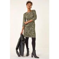 Paisley Print Pocket Shift Stretch Dress from Roman. Step out in style this season with our paisley print shift dress. This knee-length dress features fashionable 3/4 sleeves with folded cuffs and a classic round neckline. Crafted from comfortable stretch fabric, this dress is not only stylish but also easy to wear. Complete your outfit by pairing it with tights and ankle boots for a cosy look that's perfect for any occasion! | Roman Women's Paisley Print Pocket Shift Stretch Dress in Olive | Size: 20 - Manufacturers part number: Roman_5063566578050