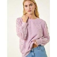Floral Mesh Knit Jumper from Roman. This style is ONE size. Add a touch of floral elegance to your wardrobe with this beautiful mesh knit jumper. The long sleeves and crew neck provide a classic silhouette, while the delicate floral mesh adds a touch of feminine charm. Cut from a mix of knitted fabric, this jumper is perfect for adding a stylish layer to your outfit. Pair it with a denim jacket and jeggings for a complete casual look that's perfect for any occasion. | Roman Women's Floral Mesh Knit Jumper in Lavender - Manufacturers part numbers: Roman_5063566588172|160293p