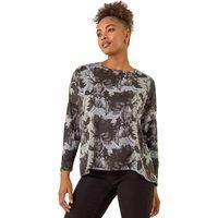 Printed Scarf Tunic Stretch Top from Roman. Stay snug and stylish in this stunning tunic top that will keep you cosy all season long. With a luxurious scarf neckline and long sleeves, offering both warmth and a touch of elegance. Crafted from a smooth stretch fabric with a dark print, this tunic flares out for a flattering fit. Pair with wide leg jeans and ankle boots for a complete Autumn Winter look that's perfect for any occasion! | Roman Women's Printed Scarf Tunic Stretch Top in Grey | Size: 18 - Manufacturers part numbers: Roman_5063566600188|194693p