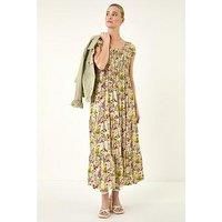 Get this Roman Originals Bardot Dress for Women UK Ladies Shirred Chest Off Shoulder Cold Shoulder Maxi Midi Summer Beach Holiday Sleeveless Garden Cocktail Party Elasticated - Floral Stone - Size 12 from Amazon for only £42.00. We found this offer today, so hurry whilst stocks last! - Manufacturers part number: 140594p