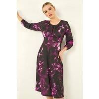 Petite Abstract Stretch Midi Dress from Roman. Unleash your unique style in this abstract stretch midi dress, perfect for the Autumn/Winter season. Featuring a classic round neck and long sleeves, this dress is cut in a flattering fit and flare shape that accentuates the figure beautifully. Gathers along the neckline and waist add dimension and interest to the outfit, making it a standout piece. Pair with tights and ankle boots for a chic and sophisticated look that will take you effortlessly from day to night! | Roman Women's Petite Abstract Stretch Midi Dress in Purple | Size: 10 - Manufacturers part numbers: Roman_5063566656215|143543p