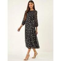 Get this Roman Spot Print Chiffon Pleated Midi Dress for Women UK Ladies Spring Everyday Summer Holiday Round Neckline Comfy 3/4 Sleeve Soft Fit & Flare Frock Dinner Date - Spot Noir - Size 12 from Amazon for only £48.00. We found this offer today, so hurry whilst stocks last! - Manufacturers part number: 146757p