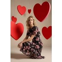 Leaf Print Back Tie Midi Dress from Roman. Get ready for the warmer months in this leaf print midi dress perfect for Spring Summer. Designed with a classic round neckline and short sleeves, this dress features a stylish back tie detail for an extra touch. Crafted from a soft chiffon woven fabric, it falls at a flattering midi length with a mesmerising leaf print. Pair it with a light blazer and heels for a stunning look! | Roman Women's Leaf Print Back Tie Midi Dress in Black | Size: 20 - Manufacturers part number: Roman_5063566673755