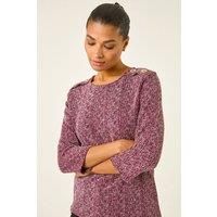 Textured Button Shoulder Top from Roman. Stay comfortable in this stylish jersey top. Designed with a flattering round neckline, 3/4 sleeves, and finishing with sweet shoulder button details, this top is perfect for the Autumn Winter season. Cut from a comfortable textured jersey fabric, this versatile piece can be styled effortlessly with a denim jacket and jeggings for a complete casual look! | Roman Women's Textured Button Shoulder Top in Burgundy | Size: 14 - Manufacturers part number: Roman_5063566690639