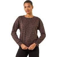 Animal Print Metallic Stretch Top from Roman. Get wild this Autumn Winter in this stunning animal print top. The classic round neckline and long sleeves are detailed with metallic accents, adding a touch of glamour to this comfortable stretch jersey fabric top. Pair with wide-leg jeans and ankle boots for a chic and fashionable look! | Roman Women's Animal Print Metallic Stretch Top in Chocolate | Size: 20 - Manufacturers part number: Roman_5063566690844