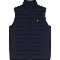 Outer Materials: 90% Nylon, 10% Elastane. Filling Material: 100% Polyester. Fabric: Stretch. Design: Logo, Quilted. Fabric Technology: Lightweight. Neckline: Funnel Neck. Sleeve-Type: Sleeveless. Fit: Regular. Pockets: 1 Chest Pocket, 2 Side Pockets, Zip. Fastening: Full Zip. XS: 35 in. S: 37 in. M: 39.5 in. L: 42 in. XL: 44 in. XXL: 47.5 in. - Manufacturers part number: Lyle & Scott_UTLS281_darknavy_MP-7813