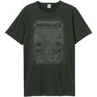 100% Cotton. Fabric: Carbon Brushed, Soft Touch. Design: Album Artwork, Graphic Print, Text. Neckline: Crew Neck, Ribbed. Hem: Rolled Back Cut Seams, Twin Needle Stitch. Sleeve-Type: Short-Sleeved. 100% Officially Licensed. Fit: Loose. Style: Vintage. S: 40 in. M: 44 in. L: 45.5 in. XL: 48 in. XXL: 49.5 in. | Amplified Men The Black Album Metallica T-Shirt in Charcoal | Size: Small