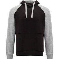50% Cotton, 50% Polyester. Design: Two Tone. 280gsm. Hood Features: Drawcord, Sew-On. Hem: Elastane, Ribbed. Neckline: Cross Neck, Hooded. Cuff: Elastane, Ribbed. Sleeve-Type: Long-Sleeved, Raglan. Metal Eyelets, Tearaway Label. Pockets: 1 Kangaroo Pocket. Fastening: Pull Over. Sustainability: Oeko-Tex Standard 100 Certified. Suitable for: Screenprint. | ROLY Men Badet Two Tone Hoodie in True Black | Size: X-Small - Manufacturers part number: Roly_UTPF4553_solidblackheathergrey_MP-7813