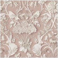 Material: Paper. Design: 3D, Bee, Birds, Leaves, Rabbit, Woodland. Design Repeat: 53cm. Easy Application, Good Lightfastness, Paste the Paper, Straight Pattern Match. | Fine Dcor 3D Woodland Wallpaper in Pink