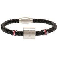 Material: Leather, Stainless Steel. Fastening: Magnetic Clasp. Design: Crest, Engraved, Rope. 100% Officially Licensed. Packaging: Boxed. | Rangers FC Men's Stainless Steel Leather Ring Bracelet in Black