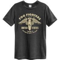 100% Cotton. Fabric: Carbon Brushed, Soft Touch. Design: Angel Wings, Lightning Bolt, Logo, Screenprint, Text. Neckline: Crew Neck, Double Edged, Ribbed. Sleeve-Type: Rolled Back Cut Seams, Short-Sleeved. Hem: Rolled Back Cut Seams. 100% Officially Licensed. Fit: Loose. S: 40 in. M: 41.5 in. L: 43 in. XL: 44.5in. XXL: 46.5 in. 3XL: 48 in. | Amplified Men One By One Foo Fighters T-Shirt in Charcoal | Size: 3X-Large