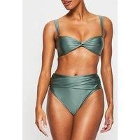 KBX Swim Solid Collections Bikini Top Step into summer in the khaki-coloured Collections bikini top by KBX. Made from a subtle metallic-toned swim fabric, it features a twist in the middle, removable pads and no underwire. Complete with adjustable and detachable shoulder straps, a swimwear clasp on the back and a branded metal tab. Made from swim fabric with a metallic sheen Material Content: Poly amide 80 %,Elastane 20 % Brushed gold hardware Twisted at centre front Removable pads Non-wired Adjustable ...