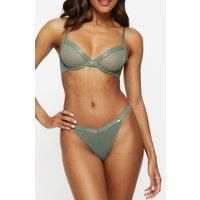 KBX Zadie String Introducing Zadie by KBX, the string in a green soft-touch mesh fabric. Made from soft breathable mesh with an elasticated v-shaped waistband that sits low on the hips. Complete with subtle brushed champagne gold-toned hardware, the string back offers a barely-there feel that's undetectable under clothing. Made from soft mesh Material Content: Poly amide 90 %,Elastane 10 % Brushed champagne gold-toned hardware V-shaped front Elasticated waistband Breathable String
