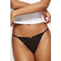 Opt for the 3 pack mesh and textured thong set by KBX. Included is 1 black mesh, 1 animal print lace and 1 green mesh thong. Designed with narrow side straps and a brushed gold branded disk at the centre front. | KBX Women's 3 Pack Mesh Texture Thong in Black | Size: 10
